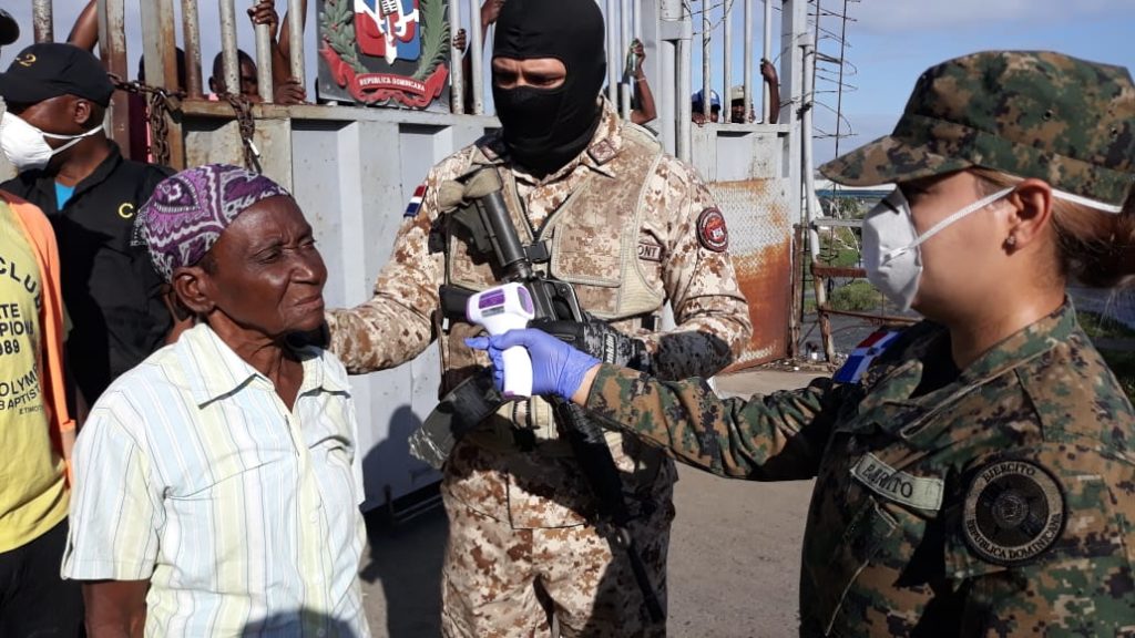 Dajabón, República Dominicana.- Miembros castrenses del área de salud, fueron apostados en las diferentes ciudades fronterizas, con el propósito de realizar pruebas de temperatura a los ciudadanos extranjeros que cruzan la frontera hacia suelo dominicano, desde el vecino país de Haití, informaron que buscan evitar posibles entrada del virus del coronavirus desde ese país.