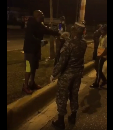 En un video que circula en las rede sociales muestra como El Sujeto, quien se desplazaba en una jeepeta blanca, baja del vehículo e intima algunos agentes para que lo dejen ir, mientras que otros exigían que lo retuvieran.