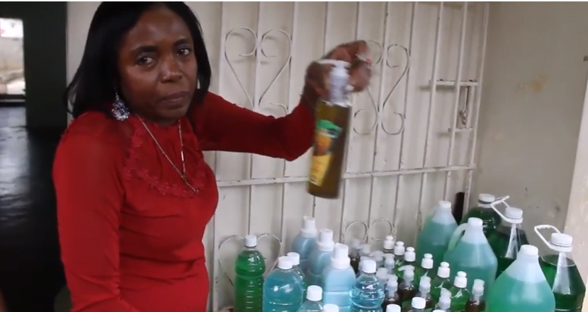 Quisqueya Prud Homme, hablando en nombre del Centro de Madre, dijo que tienen un gran tiempo trabajando en todas las comunidades del municipio de Partido, y que la fabricación de los productos para la limpieza, consiste en distintas clases de jabones, desinfectantes, y expresa la calidad de los mismos.