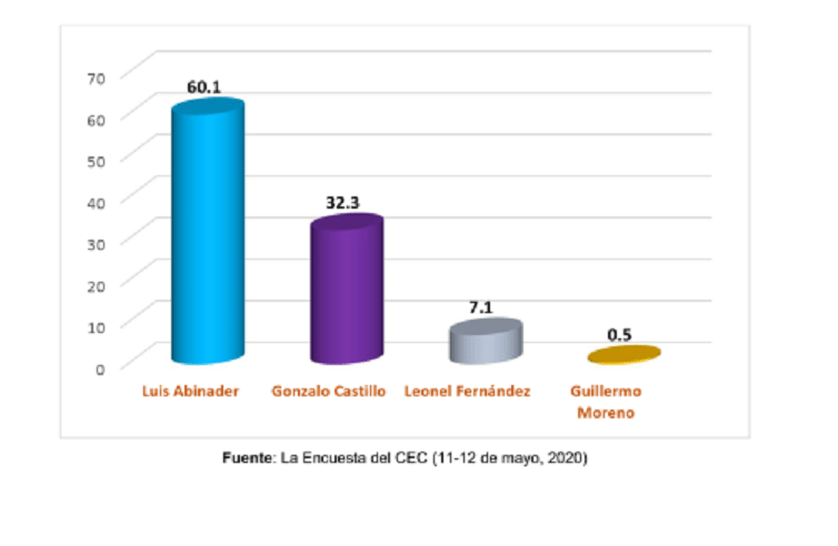 Los datos corresponden a la más reciente encuesta del Centro Económico del Cibao que, dijo, preguntó a los consultados: “independientemente de sus simpatías partidarias ¿Cuál candidato cree usted que ganará la presidencia en las elecciones del 5 de julio?