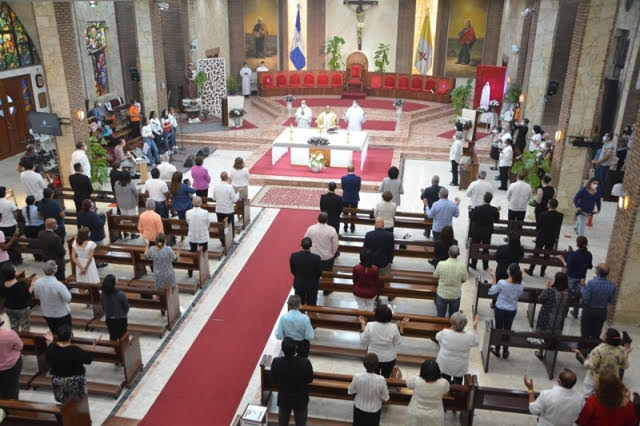 La ceremonia religiosa se desarrolló con el distanciamiento recomendado por las autoridades y el protocolo de salud recomendado para los oficios preparados por la iglesia católica.