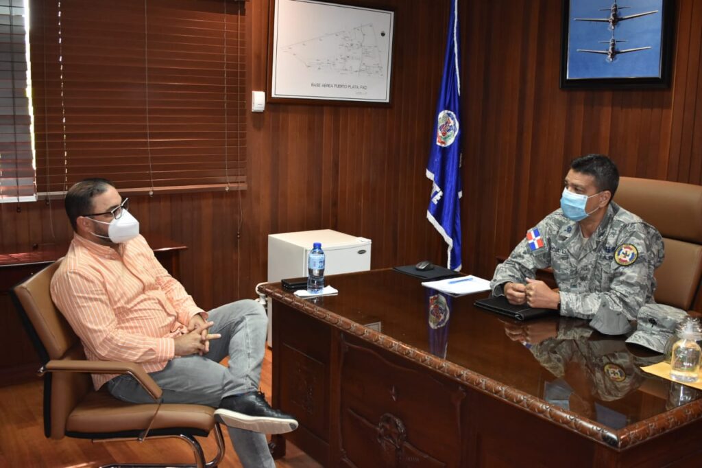 PUERTO PLATA. – El director general de la Corporación de Acueductos y Alcantarillados de Puerto Plata (CORAAPPLATA), ingeniero Oliver Nazario Brugal, giró una visita de cortesía al comandante de la Base Aérea de Puerto Plata (BAPP), coronel piloto Manuel Abad García Lithgow.