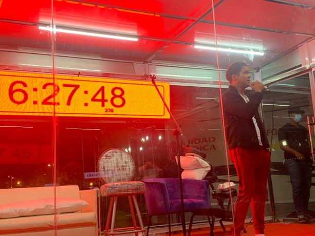 En su caja de cristal, ubicada esta vez en la Plaza Juan Barón del malecón de Santo Domingo, el intérprete se apreciaba la noche de este miércoles de buen humor, y según ha dicho la producción, uno de los chequeos que le hicieron en una de sus pausas arrojó como resultado que su corazón «está mejor que cuando empezó».