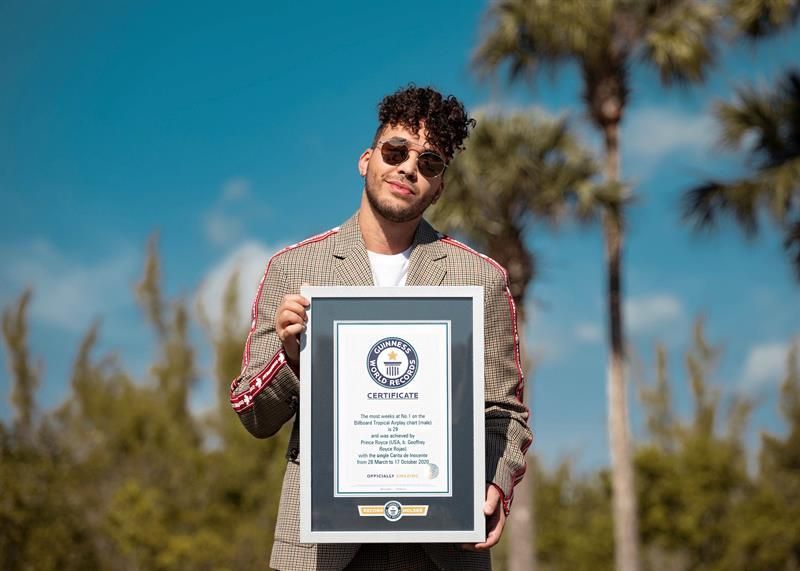 «Es un gran placer y un honor premiar a la estrella de la música latina Prince Royce. Su gran éxito ‘Carita de inocente’ se posicionó por 29 semanas consecutivas número 1, convirtiéndolo en una inspiración para la comunidad latina. Estamos encantados de darle la bienvenida a la familia de Guinness World Records», indicó Spencer Cammarano, quien se encarga de adjudicar los récords.