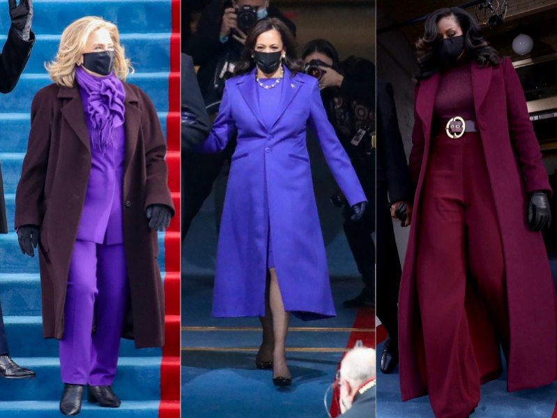 Llama la atención que tres de las mujeres con más peso en la política del país, la nueva vicepresidenta Kamala Harris, Michelle Obama y Hillary Clinton hayan elegido el morado como color en este día. Hasta la senadora Elizabeth Warren lució una bufanda de este tono.