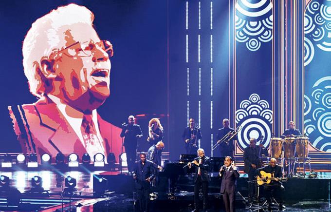 Gilberto Santarosa y José Alberto “El Canario” cantaron los éxitos de Pacheco “Quítate tú”, “Mi gente”, “Los compadres” y “Guaguanco pa’l que sabe”, acompañados de Sergio George al piano y Nestor Torres en la flauta.
