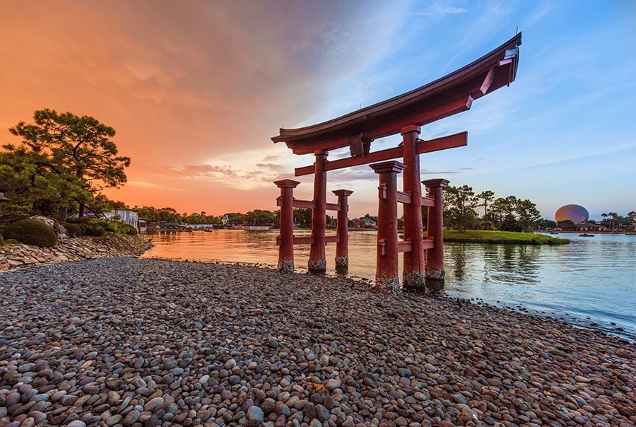 De aquí, los pabellones internacionales del World Showcase (la sección de la Vitrina del Mundo) invitan a continuar una “vuelta al planeta” en un día. A mi siempre me encanta, entre otras cosas, escuchar al Mariachi Cobre del pabellón de Méjico, ver las películas y atracciones en los pabellones del Canadá, la China , Méjico y otros, comprar rico té en el Reino Unido, sacarme una foto frente a la Torre Eiffel del pabellón de Francia, y almorzar pollo teriyaki en el Katsura Grill del pabellón del Japón después de sacar fotos a su escénica puerta Torii junto al lago de la Vitrina del Mundo. El Katsura Grill es un restaurante con mesas al aire libre en un bello jardín tradicional japonés (bello, y muy apropiado para comer en tiempos de pandemia).