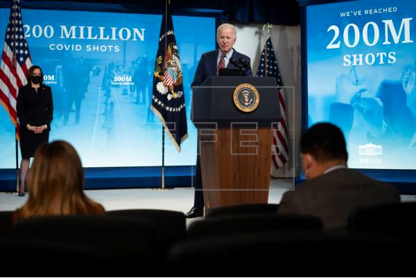 El presidente Joe Biden compareció para anunciar que este mismo miércoles se alcanzaron los 200 millones de dosis de vacunas contra la covid-19 inoculadas en el país, cifra que había prometido en sus 100 días de mandato y que se logra una semana antes de que se cumpla ese periodo.