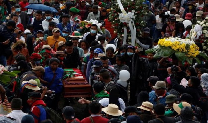La autoridad del pueblo nasa fue enterrada un día después de que la comunidad indígena del Cauca iniciara una marcha pacífica en su memoria, jornada marcada nuevamente por la violencia en la que al menos 22 personas resultaron heridas tras el ataque armado del que fue víctima la movilización, al parecer por presuntos disidentes de la antigua guerrilla FARC.