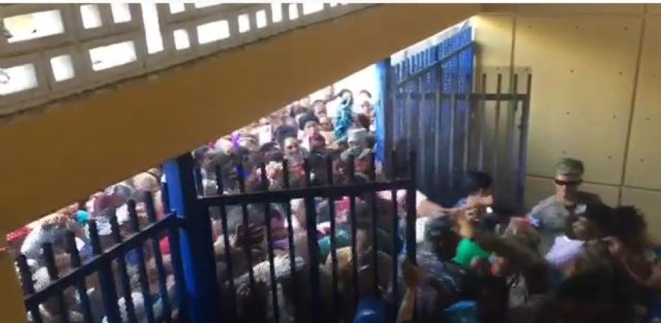 Santo Domingo.-Decenas de personas irrumpieron de manera violenta al Palacio de los Deportes de Barahona cuando intentaban ingresar a las instalaciones para cambiar el plástico de su tarjeta Supérate.