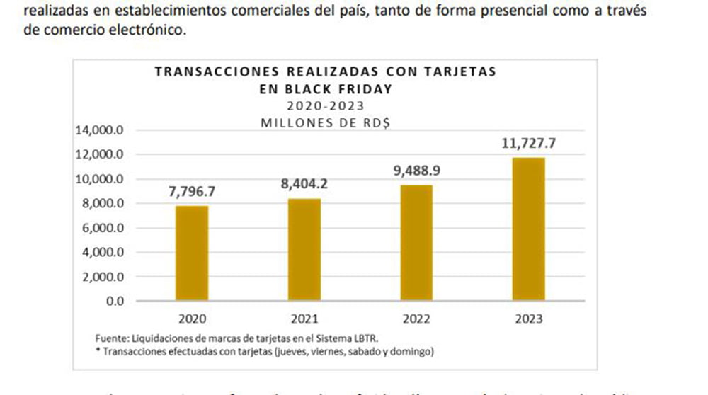 RD.-El Banco Central de la República Dominicana (BCRD) informó que durante la celebración de Black Friday el pasado fin de semana se realizaron consumos pagados con tarjetas por un monto de RD$11,727.7 millones.