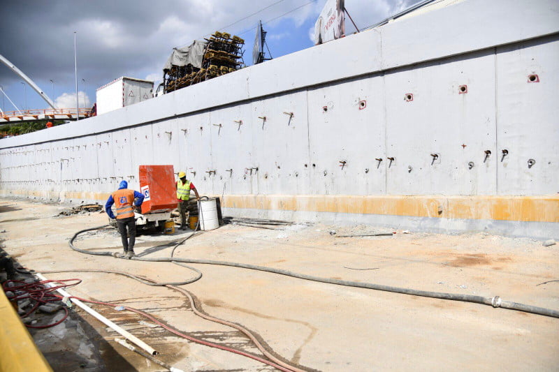 También afirmaron que están trabajando en la excavación y colocación de los anclajes de refuerzo y estabilidad del muro, añadiendo que las labores de extracción de núcleos de concreto para drenajes y anclajes se han intensificado para agilizar los trabajos a fin de concluir los mismos en el tiempo previsto.