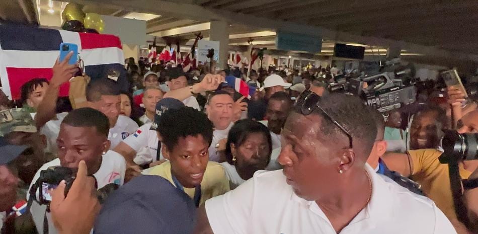RD.-Con un aeropuerto totalmente repleto de personas que los esperaban con júbilo, fueron recibidos en su llegada al país los medallistas olímpicos en París 2024, Marileidy Paulino, Cristian Pinales y Yunior Alcántara.