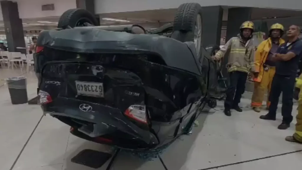 El accidente fue reportado la tarde de este miércoles, cuando el automóvil cayó sobre el primer piso del establecimiento, provocando que escombros cayeran sobre las personas que resultaron heridas.