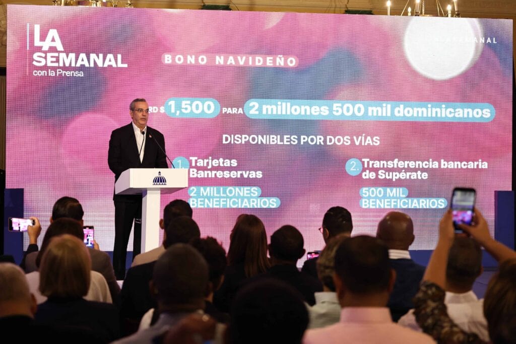 Así lo informó este lunes el presidente Luis Abinader quien, además, comunicó que unos tres millones de personas se beneficiarán en esta navidad con el bono «Brisita Navideña» de 1,500 pesos.