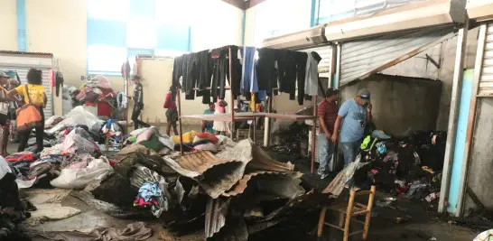 El siniestro, que fue controlado por el cuerpo de bomberos, dejó daños en cinco cubículos, dos cafeterías y tres puestos de vender ropas usadas.