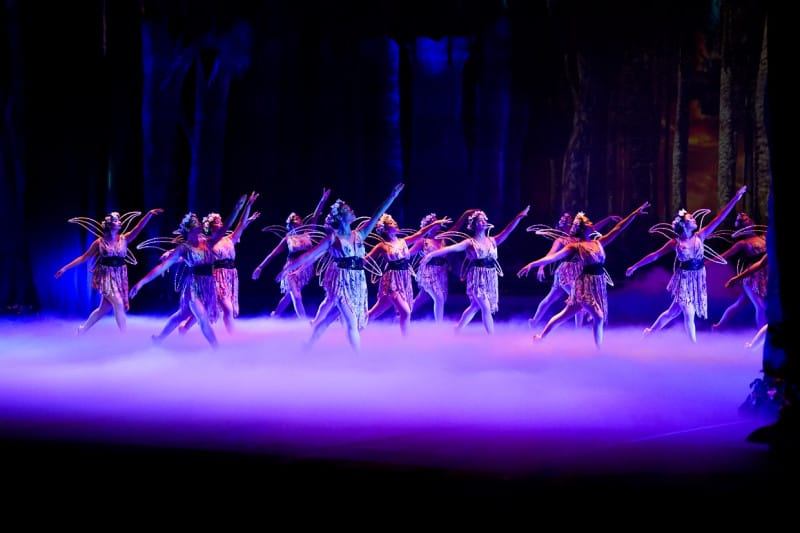 La coreografía, dirigida por Alina Abreu e inspirada en el ballet “The Dream” de Frederik Ashton, combina movimientos gráciles y estilizados que acompañan la interpretación de los personajes fantásticos, logrando que en ocasiones parezcan flotar por el escenario.