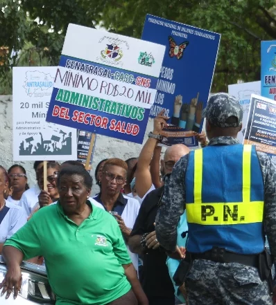 Santo Domingo.- El personal administrativo de los hospitales protestó ayer frente al Servicio Nacional de Salud (SNS) en demanda de inclusión del aumento salarial del 25 %, que el Gobierno hará al sector sanitario.