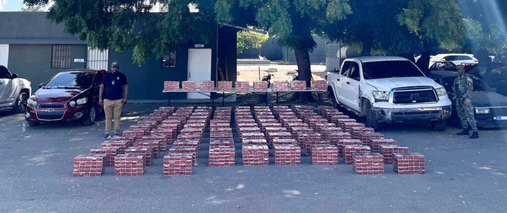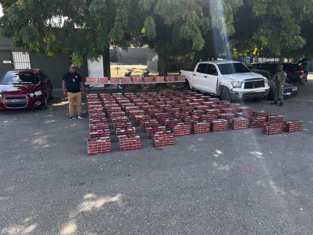 Al inspeccionar el vehículo, los militares encontraron en su interior (52) cajas de cigarrillos marca Capital, cada una de (50) paquetes que contienen (10) cajetillas de veinte (20) unidades, para un total de (520,000) unidades, mercancía de orígen extranjero, que no cuenta con la regulación de la Dirección General de Aduanas (DGA).