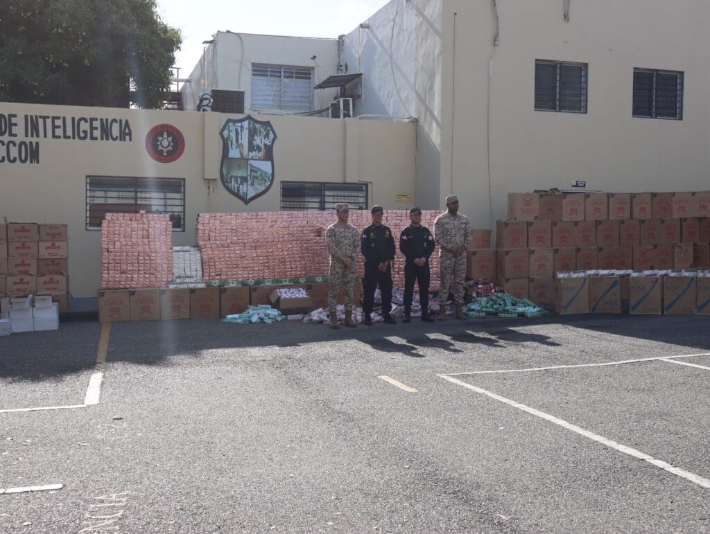 Santo Domingo.- El Cuerpo Especializado de Seguridad Fronteriza Terrestre (CESFRONT) entregó al Cuerpo Especializado de Control de Combustibles y Comercio de Mercancías (CECCOM) la cantidad de 2,289,770 unidades de cigarrillos de diferentes marcas y otras mercancías que se intentaron introducir al país de manera irregular desde Haití.