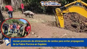 Dajabón, República Dominicana.- Tras la confirmación del rebrote de la Fiebre Porcina Africana, autoridades del Ministerio de Agricultura procedieron a realizar el sacrificio humanitario de todos los cerdos en la zona afectada del municipio del Pino, incluyendo aquellos aparentemente sanos, como medida protocolar en busca de prevenir la propagación del virus.