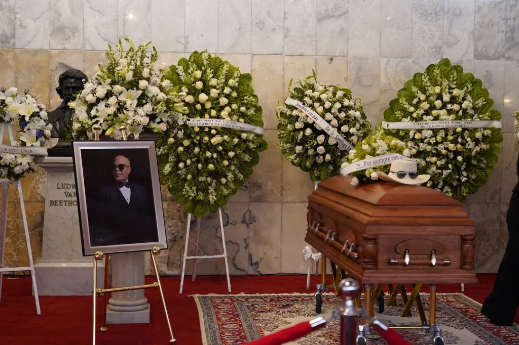 Santo Domingo.- El cuerpo del merenguero Rubby Pérez ya reposa en el Teatro Nacional Eduardo Brito para el velatorio organizado por el Ministerio de Cultura.
