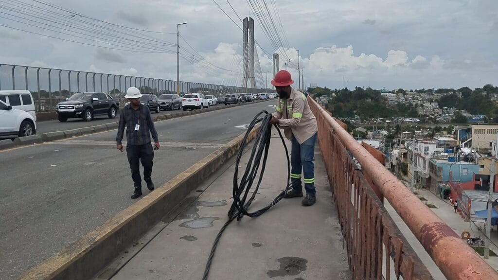 Santo Domingo.-La autoridades de la Dirección General de Seguridad de Tránsito y Transporte Terrestre, junto con equipos de la distribuidora eléctrica Edeste, así como RD Vial restablecieron el tránsito vehicular en el puente Francisco del Rosario Sánchez mejor conocido como el puente de la 17, luego de que cinco postes del tendido eléctrico colapsaran sobre la vía, cerca del mediodía de este lunes.