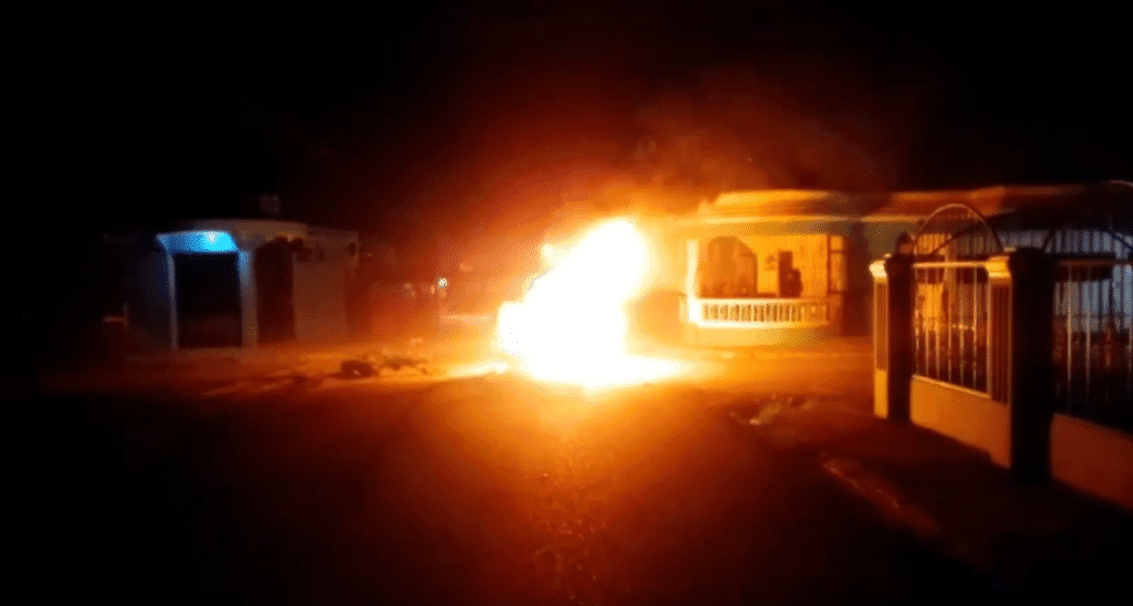 Residentes de varios sectores de Sabana Grande de Boyá incendiaron neumáticos este jueves, en protesta por las largas tandas de apagones que desde hace más de dos meses afectan el municipio.