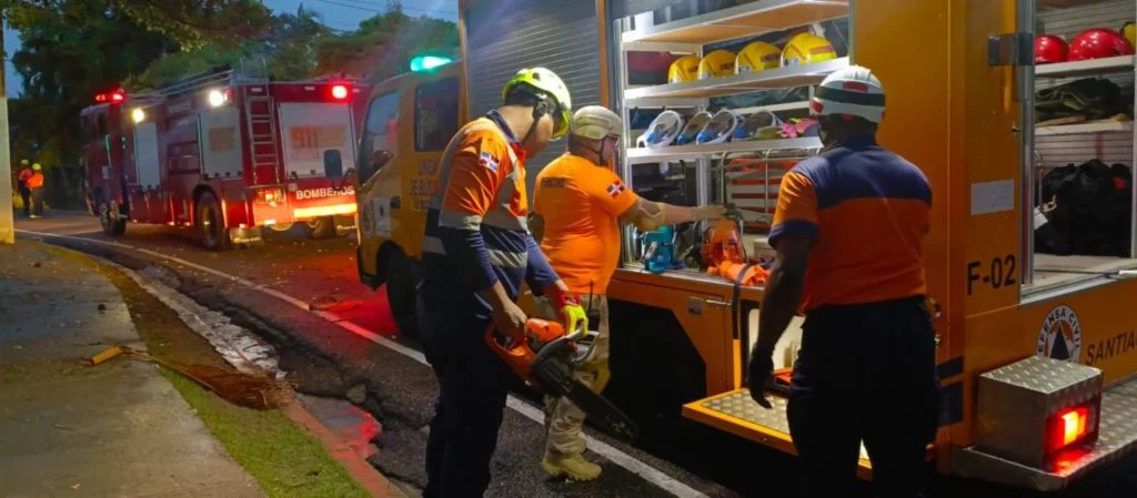 El hecho ocurrió alrededor de las 4:30 de la tarde, cuando intensas lluvias y vientos afectaron la parte sur de Santiago, provocando la caída de árboles, letreros y puertas corredizas, lo que dejó varias vías obstaculizadas.