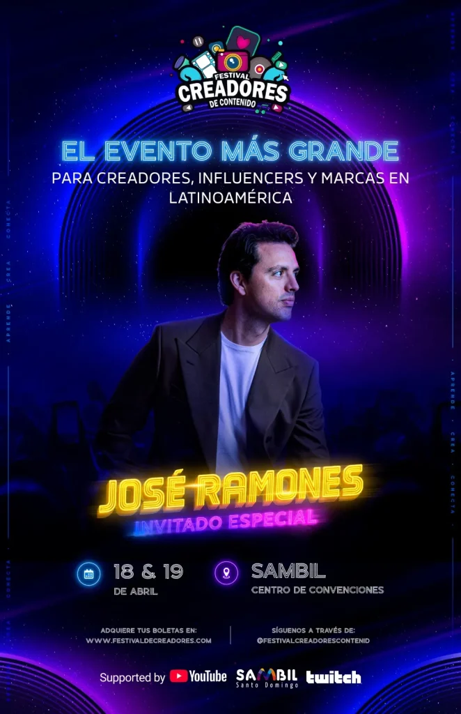 La República Dominicana se prepara para ser, por segunda ocasión, el punto de encuentro más relevante de la economía de creadores en América Latina. El Festival Latinoamericano de Creadores de Contenido —organizado por Héctor Manzueta— anunció este domingo para su edición 2026 la visita de José Ramones, junto a ejecutivos de YouTube y Twitch, dos de las plataformas que hoy definen cómo se consume, monetiza y distribuye contenido a escala global.